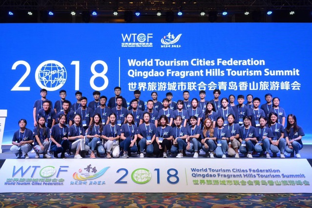 本网讯(旅游与酒店管理学院 白星宇)9月7日至9日,2018世界旅游城市联合会青岛香山旅游峰会在青岛举办。旅游与酒店管理学院选派35名“金海豚”志愿者开展志愿服务工作。