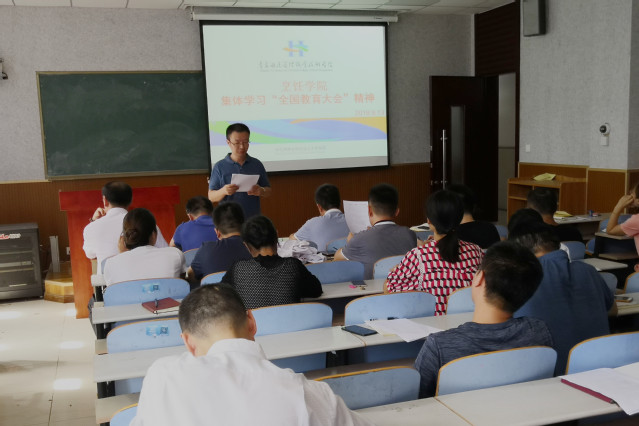学院师生表示立德树人是学校的根本任务、塑造灵魂是教师的光荣使命,要把思想和行动统一到以习近平同志为核心的党中央决策部署上来,做到“两个坚决维护”, 坚持正确政治方向、坚持服务国家、坚持改革创新,以“四有好老师”为标准,把学习贯彻习近平总书记讲话精神与学院发展结合起来。