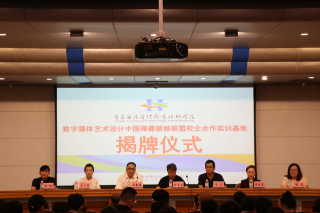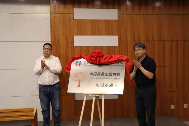 宫恩龙和品薇集团董事长刘春强共同为校企合作实训基地揭牌。刘春强介绍了集团概况,阐述了校企合作的具体实施计划,他以《成功的创业来自精准的勤奋,而不是平庸的忙碌》为题给同学们做了一场创业讲坛,并与现场同学就婚礼策划、创意摄影、场景设计等进行良好互动。