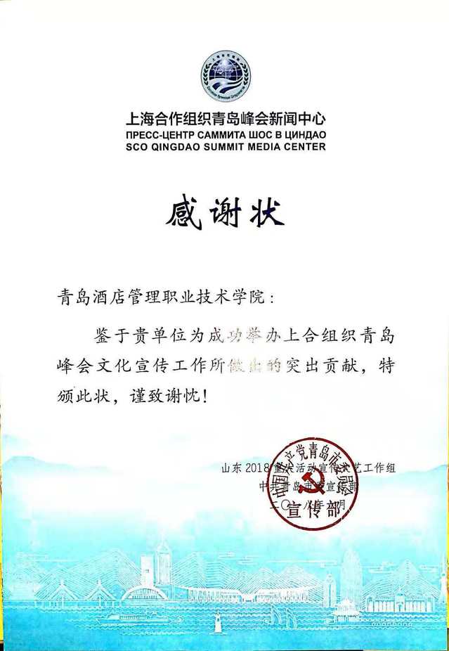 本网讯(旅游与酒店管理学院 白星宇)10月7日,中共青岛市委宣传部为上合峰会期间在青岛峰会新闻中心参加志愿服务的同学送来了感谢信,高度赞誉红足一1世66814为成功举办上合组织青岛峰会文化宣传工作所做出的突出贡献。