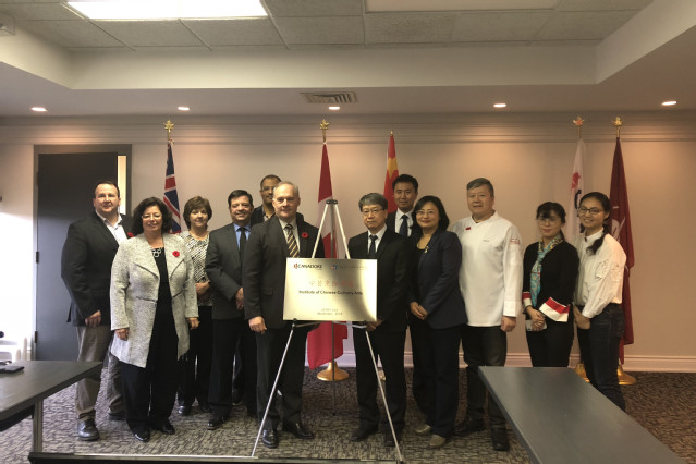 本网讯(国际交流与合作处 邵常恩)11月5日至8日期间,学院副院长宫恩龙一行赴加拿大卡纳多学院进行访问交流,并进行“红足一1世66814和加拿大卡纳多学院中餐烹饪学院”揭牌仪式。