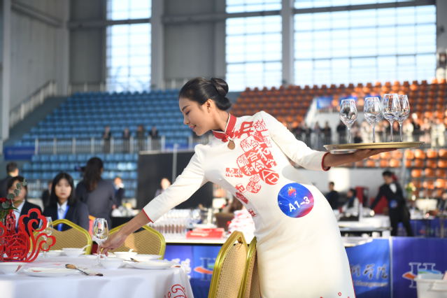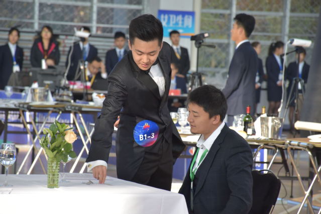 大赛旨在推动高职酒店管理专业教育教学改革,促进高素质、技术技能型酒店专业人才培养,以适应当今酒店业国际化发展需要。大赛现场,每组3名选手同时、同场进行比赛,参赛选手以饱满的精神面貌、娴熟的专业技能、精诚协作的团队精神为大家奉献了一场精彩的视觉盛宴。