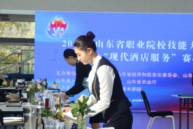 本网讯(宣传部)11月13-14日,秋色满园,校园迎来了一批绅士淑女。山东省职业院校技能大赛(高职组)“现代酒店服务”赛项在学院拉开帷幕,为期两天的赛事,展示了省内高职院校酒店服务的最高水平。