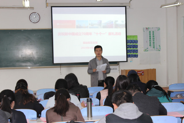 本网讯(基础教学部 田峰)4月25日,基础教学部召开全体教师会议,正式启动“十个一”系列活动,献礼新中国成立70周年。