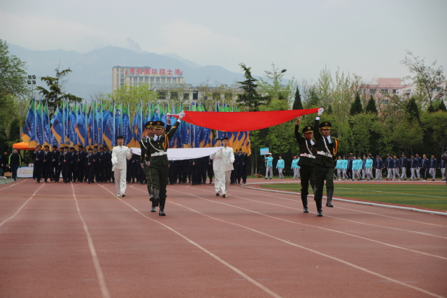 开幕式上,伴随着雄壮有力的《运动员进行曲》,各方队迈着整齐矫健的步伐、喊着铿锵有力的口号,精神抖擞、意气昂扬地走过主席台,接受学院领导和全院师生的检阅。