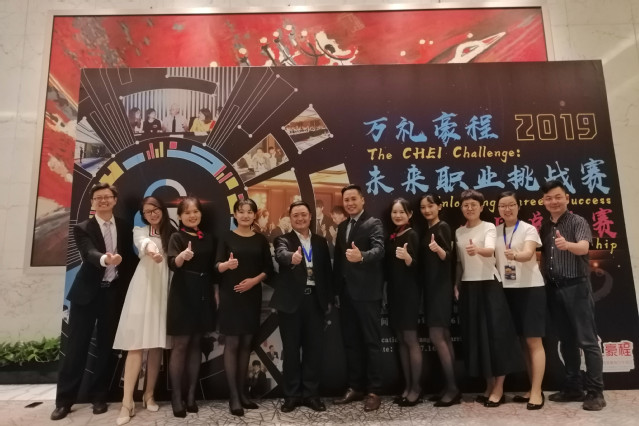 本网讯(旅游与酒店管理学院 杨轶哲)7月16日,由万礼豪程基金会支持的万礼豪程2019学生未来职业挑战赛全国总决赛圆满落幕,我院代表队荣获全国专本院校总分第三名、高职组总分第二名、最佳角色扮演奖的优异成绩,杨轶哲荣获全国优秀指导教师称号,秦博文同学获得专科组唯一最佳个人风采展示奖,万豪大中华区总裁施康瑞先生现场给予秦博文万豪全球offer。