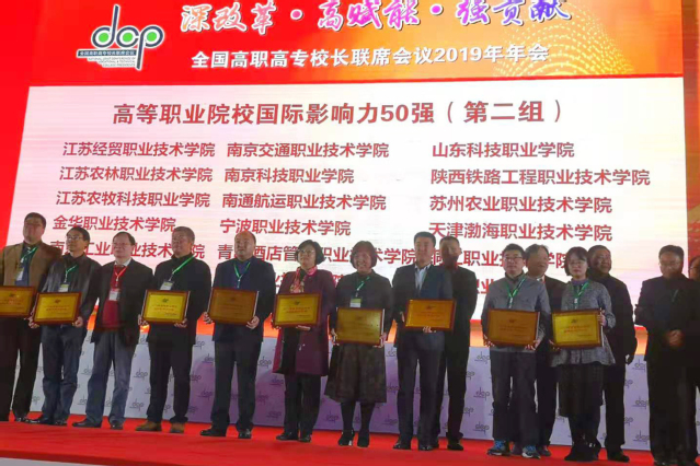 本讯网(国际交流与合作处 邵常恩)11月21-23日,全国高职高专校长联席会议2019年会在重庆召开,会议对高等职业院校“国际影响力50强”、高等职业教育改革发展成果展优秀案例等进行了表彰。我院喜获高等职业院校“国际影响力50强”,这是继2017年之后,学院再次入选“国际影响力50强”。
