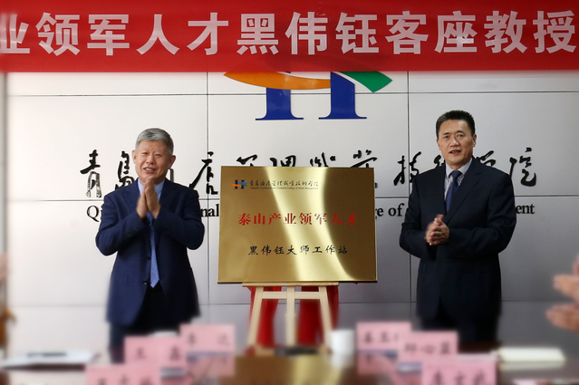 学院院长姜玉鹏为黑伟钰大师颁发聘书。李达与姜玉鹏共同为“泰山产业领军人才黑伟钰大师工作站”揭牌。党委副书记王鑫和黑伟钰共同签署聘任协议。