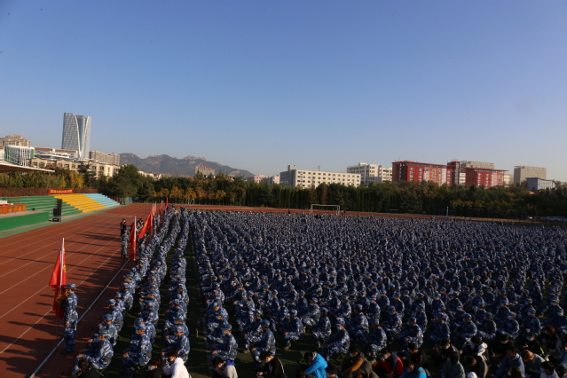 本网讯(宣传统战部 于克晓)10月23日上午,学院在体育场举行2020级新生开学典礼暨军训总结表彰大会,5000多名莘莘学子欢聚一堂,携手开启大学生活新的篇章。