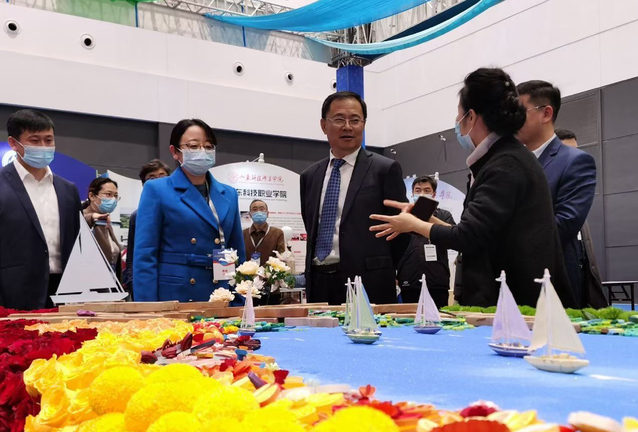 本网讯(教务处 王超) 11月18上午,2020世界职业技术教育大会暨展览会在红岛国际会展中心举行。学院承展的山东职教展团休闲互动体验区,特别是“千帆竞发”主题展台,得到了与会领导嘉宾广泛赞誉。教育部职业教育与成人教育司副司长谢俐、中国职业技术教育学会副会长史薇、山东省教育厅总督学邢顺峰、青岛市教育局局长刘鹏照等高度评价了学院办学成果和技术技能水平。