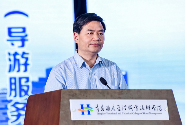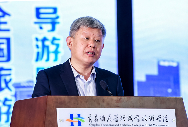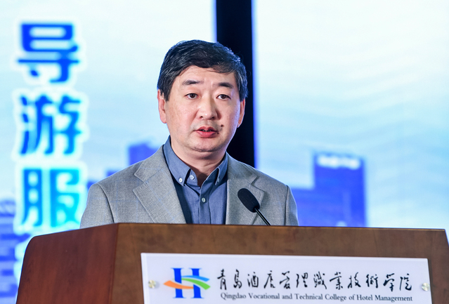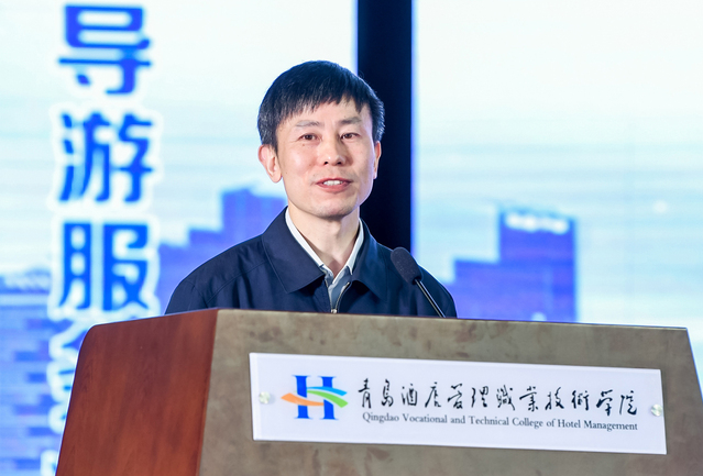 山东省文化和旅游厅市场管理处处长、一级调研员田延营致辞,代表山东省文化和旅游厅向大赛的举办表示热烈的祝贺。他指出,旅游院校服务技能大赛,是对旅游教育发展成果的检阅,也是对院校广大师生精神风貌的展示。大赛为广大专业人才提供了展示平台和交流机会,必将有力推动旅游专业院校特别是导游专业人才队伍的提升和发展,提升旅游教育支撑旅游产业发展的力度。