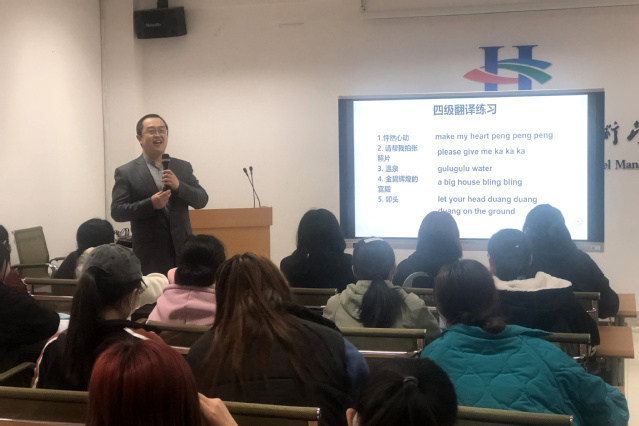 基础教学部于海老师以“漫谈文学与翻译”为主题,向读者讲述了在上海求学、翻译经典著作、“一带一路”援外工作等丰富的人生经历,结合时事政治及当代文化为读者作了深入浅出的讲解。