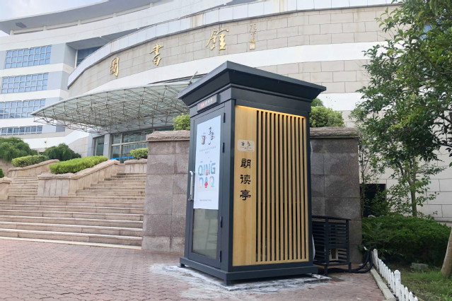 “书声”朗读亭位于图书馆正门西侧,亭内配有音响,电子显示屏、氛围灯、耳机话筒等专业设备,以朗读体验为主,集配音、测评、背诵于一体,具有操作简单、资源丰富两大亮点。朗读类资源包括红色经典、党性教育、大学语文等十余种,总数近20万篇,读者只需简单登录即可自行录制音频或视频,并可与手机实时同步,随时分享作品。