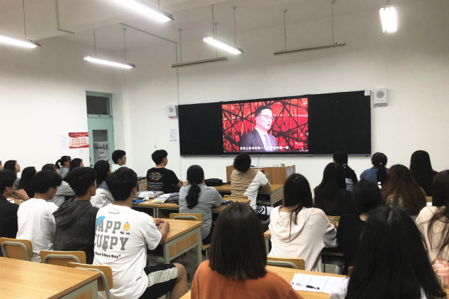 本网讯(党委宣传统战部 周晓莉)为深入贯彻落实习近平总书记“七一”重要讲话精神,引导青年学生自觉践行“请党放心、强国有我”誓言,9月29日,各二级学院组织学生通过集中收看和分散学习相结合的方式观看《齐鲁大讲坛——开学第一讲》网络直播特别节目。