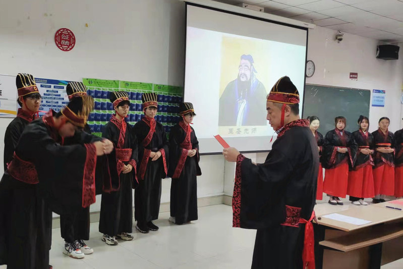活动中,青岛市礼仪学会发起人、基础教学部杨萍教授为现场学生带来了《冠礼笄礼的时代内容》专题讲座,详细讲解了中国传统的冠礼笄。随后,李沧区教育发展中心主任吴永峰,基础教学部主任石增业等分别为身着汉服的学生代表“加冠”“加笄”。仪式结束后,石增业为同学们命字,吴永峰作了训诫。