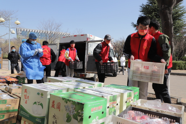 本网讯(党委宣传统战部 总务处)3月27日,西餐厅二楼青岛中快餐饮服务有限公司为在校师生免费派发了“水果大礼包”,1100多箱,5万斤。苹果、水晶梨、沃柑、香蕉4种水果,每种2个,共8个。丰富的品类让师生们切身感受到了来自学校大家庭的关爱和温暖。