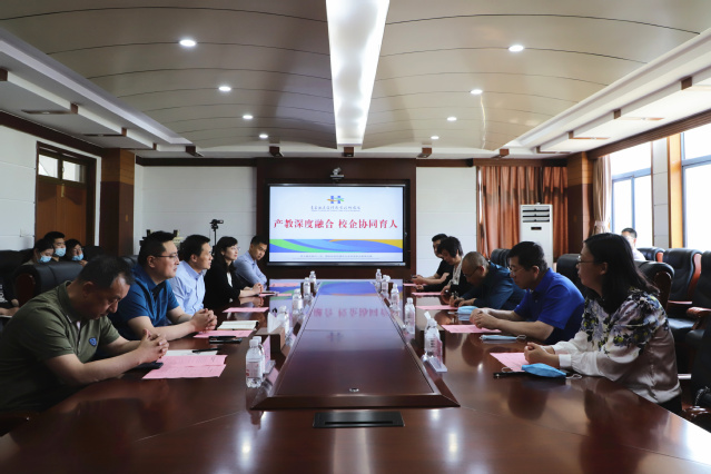 本网讯(继续教育学院 烹饪学院)5月24日,学校与青岛知行国际经济技术合作有限公司共建产教融合实训基地签约仪式在行政楼二楼会议室举行。青岛市商务局对外投资和经济合作处副处长于成习、城阳区商务局党组成员周明波、青岛知行国际经济技术合作有限公司董事长张淑珍;学校院长姜玉鹏,副院长、工会主席姜玲玲参加仪式。