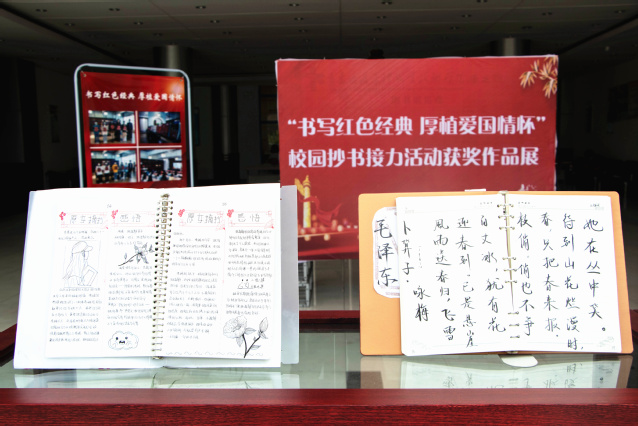 目前,全部手抄作品在图书馆一楼大厅进行集中展示,引来许多学生驻足观赏、相互交流。