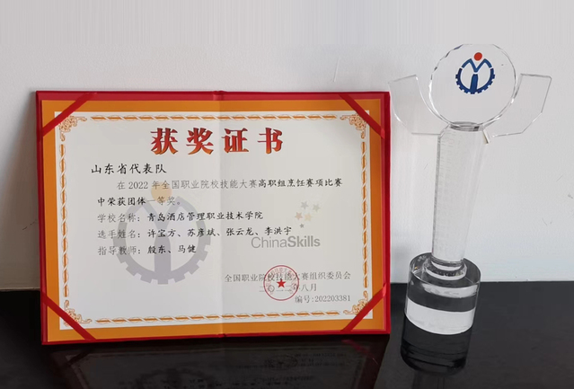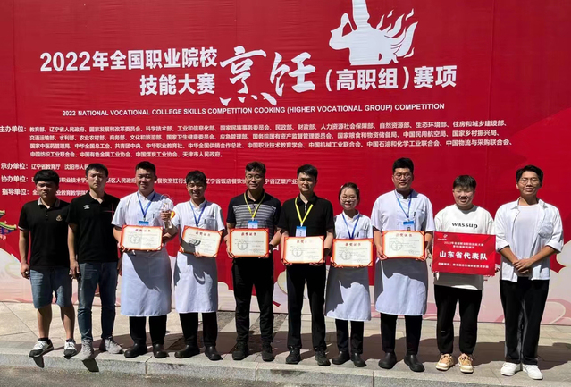 本网讯(烹饪学院 赵捷)8月20日至24日,2022年全国职业院校技能大赛(高职组)烹饪赛项在辽宁现代服务职业技术学院举行,我校烹饪学院学生许宝方、苏彦斌、张云龙、李洪宇组成的参赛团队凭借宴席作品《山海共融·美丽乡村》荣获一等奖,殷东、马健老师荣获“优秀指导教师”。