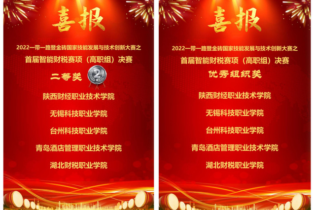 本网讯(会计学院 李真)近日,“一带一路”暨金砖国家技能发展与技术创新大赛之首届智能财税赛项(高职组)全国总决赛举行,我校会计学院学生胡京帜、刘齐云、刘坤晓、孙晨菲组成的参赛队伍荣获二等奖,学校荣获“优秀组织奖,会计学院李真、刘凯两位指导教师荣获“优秀指导教师”。