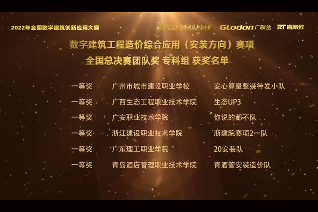全国数字建筑创新应用大赛自2008年至今已举办了十五届,该项赛事紧贴行业方向及发展趋势,聚焦土建施工类和建设工程管理类为核心的建筑类专业群,注重考查学生岗位群核心能力,助力参赛师生专业技能提升,在全国建筑类本专科院校中具有较高影响力。此次比赛共有来自全国30多个省市及自治区的300多所本专科院校参加,参赛师生总人数达10000余人次。我校三支参赛队伍赛前认真备赛、扎实训练,最终在160多个专科参赛队伍中脱颖而出,取得优异成绩。
