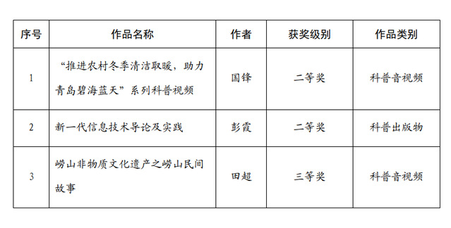 本网讯(科研发展处 刘淑青)近日,由山东省科学技术协会、山东省教育厅、山东省科学技术厅、山东省工业和信息化厅、山东省文化和旅游厅共同主办的第五届山东省科普创作大赛获奖作品名单公示。我校教师提交的作品喜获二等奖2项、三等奖1项。