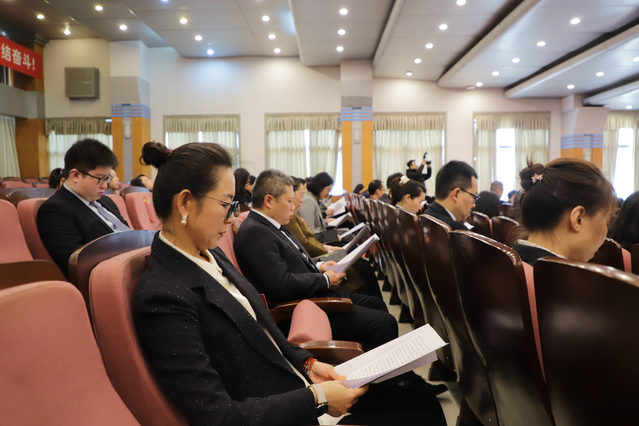 大会会场庄严简朴、气氛隆重热烈。主席台上,金色的党徽高悬正中,十面鲜艳的红旗分列两侧;会场后方悬挂着“深入学习贯彻党的二十大精神,为全面开启第二次创业新征程、创建职业教育本科学校而团结奋斗”的横幅标语,令人鼓舞、催人奋进。
