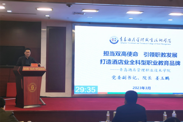 本网讯(“双高计划”建设办公室 财务处)3月20日至24日,助推“双高计划”顺利实施(2023)高级研修班(第六期)在山西晋城举办。教育部职业教育与成人教育司、财务司有关处室负责同志出席开班仪式并讲话。校长姜玉鹏在会上作题为《担当双高使命 引领职教发展 打造酒店业全科型职业教育品牌》的典型经验分享。