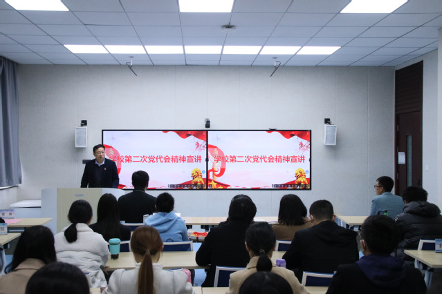 在会计学院,党委委员、纪委书记邱心显宣讲学校第二次党代会精神,回顾了学校第一次党代会以来的工作和新时代十年的显著成绩,阐释了奋力开启学校第二次创业新征程的形势要求、目标规划和思路举措。他表示,学校第二次党代会明确了奋斗目标、强调了团结奋斗,蕴含着对学校未来事业发展的政治指引、思想指引和行动指引。全体教师要切实把思想行动统一到第二次党代会精神上来,把学习成效转化为贯彻落实的生动实践,推动党代会精神落地生根。