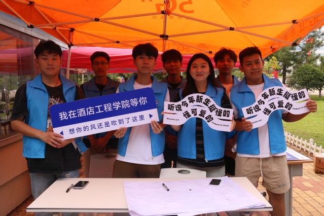 为让新生感受校园文化、加强专业认知,各二级学院用“心意+创意”为新生准备了别开生面、亮点纷呈的“迎新礼”。酒店管理学院原创涂鸦背景墙以及1120名新生名字组成“魅力酒管”汇聚成生生不息的酒管力量;文旅学院设置“时空邮箱”、线上直播、社团展示,提高了学生的专业认同感和归属感;烹饪学院铺设“味味道来青春赛道”,新生们手持青春通行证,以“趣味答题”和“快乐集章”的方式,勇闯“理想信念、学业成长、技能成才”挑战;酒店工程学院以建筑特色为依托的留影区以及新生寄语地贴,将迎新的仪式感拉满;工商管理学院制作由731位学生姓名组成的“工商门”,“踏入工商门,就是一家人”的宣言既是鼓励,也是鞭策;会计学院“小风车”迎新大道、“柿柿如意”打卡点,成为了新生和家长朋友圈里的“网红热点”;信息工程技术学院“未来号”圆梦树上的祈福卡、校园漫步云直播,全方位诠释了新生对校园美好生活的向往;艺术学院将饽饽榼子非遗文化“搬”进迎新点,以美迎新,艺术润心。