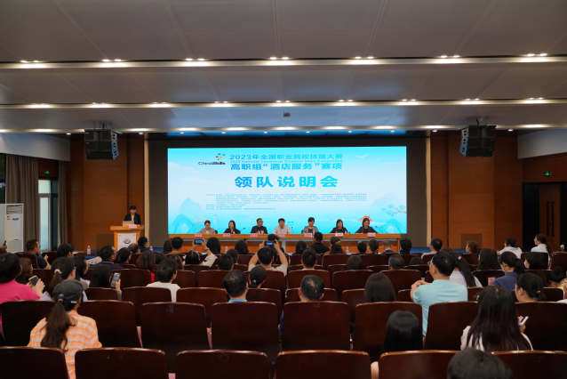 该赛项为团体赛,由前厅接待、中餐服务和西餐服务三个模块组成。其中,前厅接待分为办理入住、退房离店、投诉或突发事件处理,中餐服务分为主题宴会设计、宴会服务,西餐服务为休闲餐厅服务。赛项内容涵盖了旅游大类酒店管理与数字化运营专业的核心技能和相关岗位职业素养,反映了现代酒店工作个性化服务、信息化操作、国际化趋势的特点,体现了酒店工作过程的规范化、实境化、流程化、个性化与职业化要求。在为期四天的比赛中,选手们将本着“借鉴国际标准、突出中国特色、贴近生产实际、体现工作过程”的宗旨,围绕酒店服务中的整体综合能力及应变能力进行展示角逐。