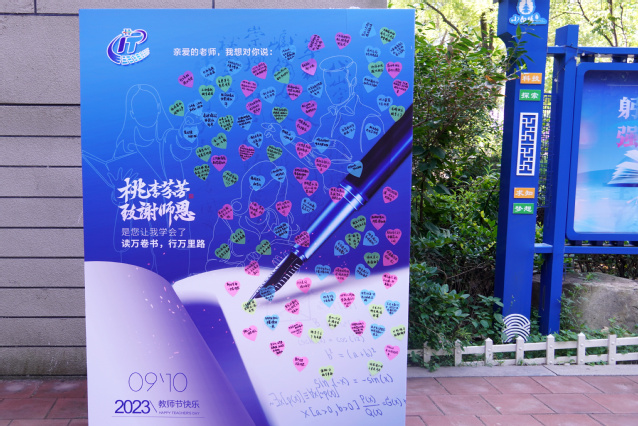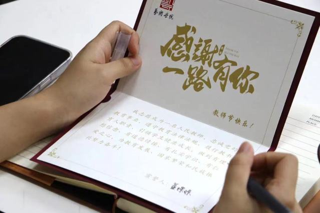 各院部积极响应学校号召开展“亮灯”行动,纷纷通过校内电子屏幕亮出教师节祝福语,共同向广大教师致敬,引导学生感念师恩、礼敬教师。马克思主义学院两台党建VR共享学习机上滚动展示“争做‘六要’好老师”“躬耕教坛,强国有我”等字幕,营造尊师敬师的浓郁氛围。学校学子谨记师恩,通过多种形式为老师献上感谢和祝福。工商管理学院、艺术学院学生代表通过诗朗诵,表达对老师的祝福;信息工程技术学院学生通过“老师我想对您说”活动,用纸条寄托感恩之情;更多的同学在课堂上为老师送上祝福,感谢老师的鼓励与陪伴。一束束美丽的鲜花、一条条温暖的消息、一张张真挚的贺卡……同学们在表达祝福与感恩的同时,纷纷表示将不负恩师厚望,不负青春梦想,当好新时代的奋斗者。