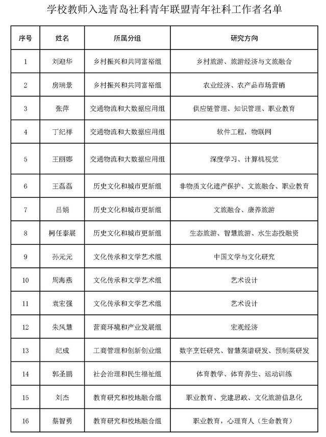 青岛社科青年联盟是我省成立的首个市级层面服务联系青年社科学者、青年社科工作者的平台,联盟成员由来自驻青高校、社科研究机构等的优秀青年学者、青年社科工作者共同组成。我校有16名教师入选,是对学校在青岛市哲学社会科学研究领域取得的成绩以及为校地融合发展所作贡献的充分肯定。