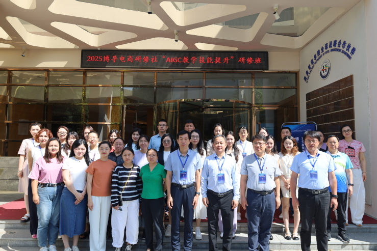 本网讯(工商管理学院 徐豪杰)7月14日,博导电商研修社全国电商职教“AIGC教学技能提升”研修班在我校开班,北京博导前程信息技术股份有限公司副总裁秦刚强、学校党委副书记韩西清参加开班仪式,来自全国中高职院校的34名教师参加此次培训。