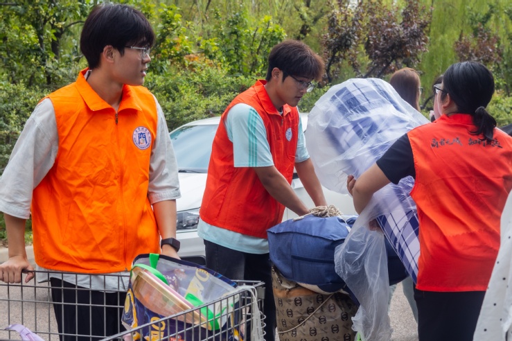 “学姐,东西放哪?”“同学,我来帮你!”烈日下、急雨中,那一抹抹跃动的“志愿色彩”,绘就了秋日校园里最绚烂动人的风景。从接站服务到答疑解惑,从行李搬运到宿舍指引,志愿者们用热忱搭建起沟通的桥梁,把细致服务“藏”进新生报到的每个环节,以行动彰显“爱心”,用专业诠释“实力”,让细节定义“责任”。